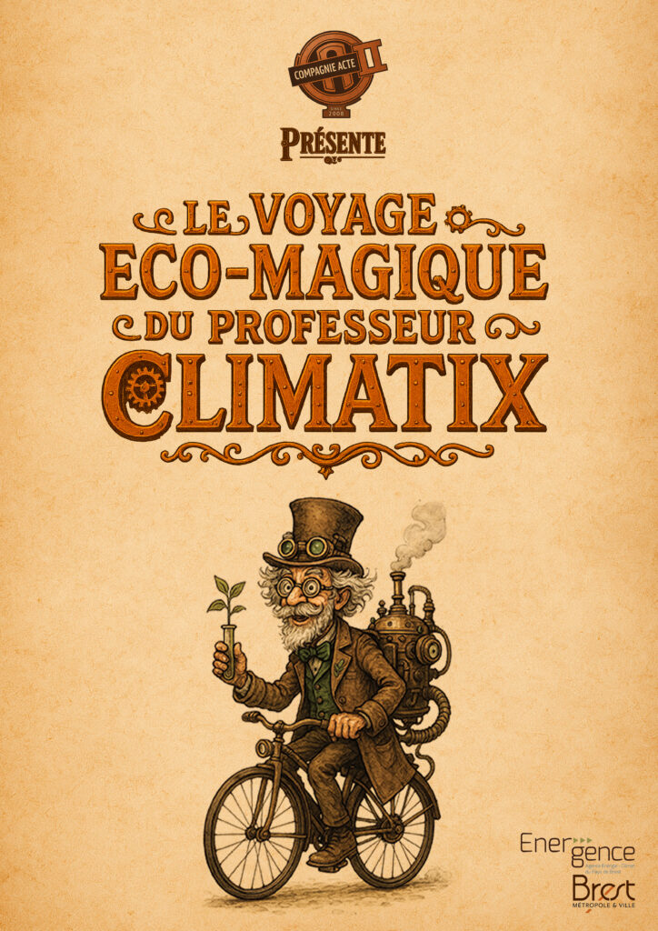 Le Voyage Eco-Magique du Professeur Climatix est un spectacle écrit par Morgane Quiguer. Il s’agit d’une commande de la ville de Brest sur le thème de la Sobriété Energétique.